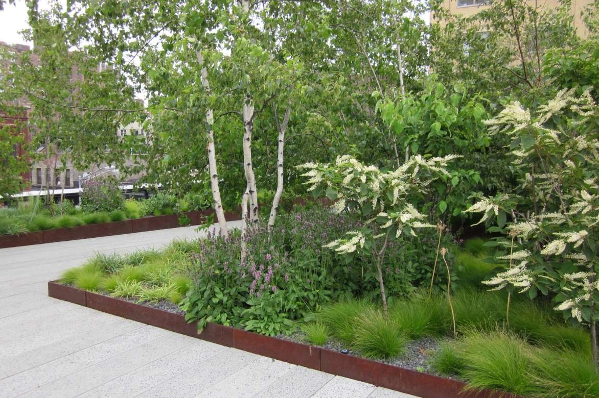 Un bel ensemble dans le bois de Gansevoort de la High Line à New York : Betula populifolia ‘Whitespire’, Clethra barbinervis, Stachys monieri ‘Hummelo’ et des graminées basses (photo Sharon_k-Flickr)