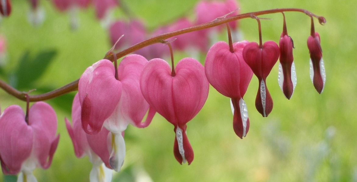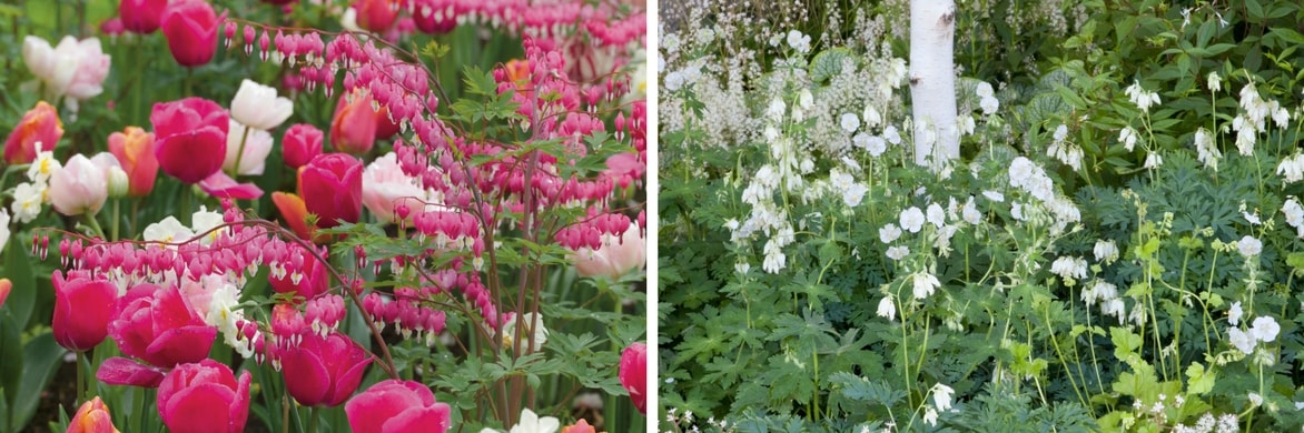 Ses fleurs, pendantes à la forme très originale de petits cœurs blanc, rose ou rouge, illuminent les jardins ombragés, tout en légèreté, d’avril à juin.