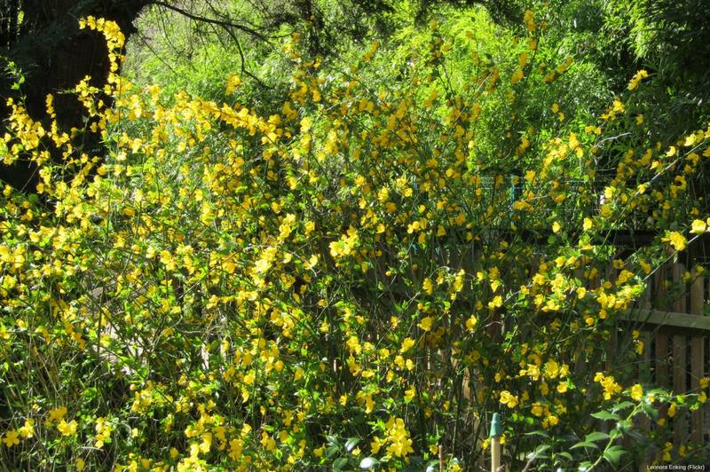 - La Corêtre du Japon offre une généreuse floraison printanière en forme de pompons jaune