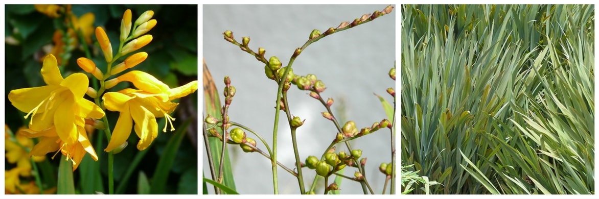 Elles réapparaissent ensuite au printemps. Le Crocosmia est très proche du Tritonia, un genre qui fut d’ailleurs anciennement utilisé comme synonyme de Crocosmia.