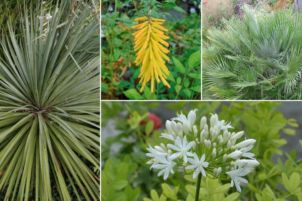 Une autre idée d’association : Dasylirion glaucophyllum, Kniphofia ‘Mango Popsicle’, Chamaerops humilis ‘Compacta’ et Agapanthe ‘White Heaven’