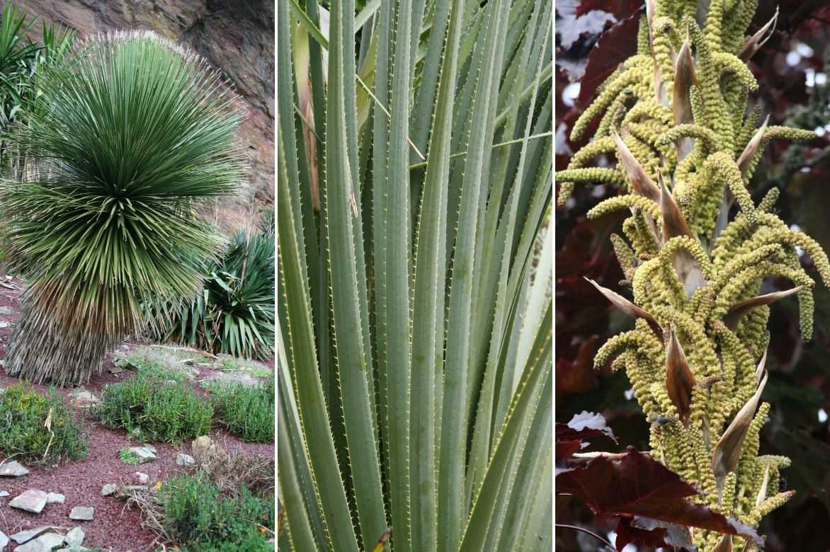 Dasylirion glaucophyllum (rustique jusqu’à -16 °C): fleurs de couleur jaune-vert, feuilles fines de couleur bleu-gris munies d’épines presque transparentes.