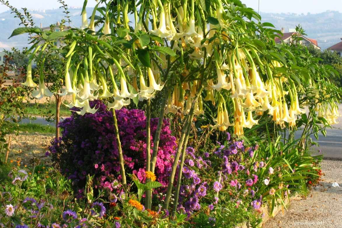 - Ils forment des grandes fleurs en trompettes pendantes ou dressées, très spectaculaires et odorantes durant l’été.