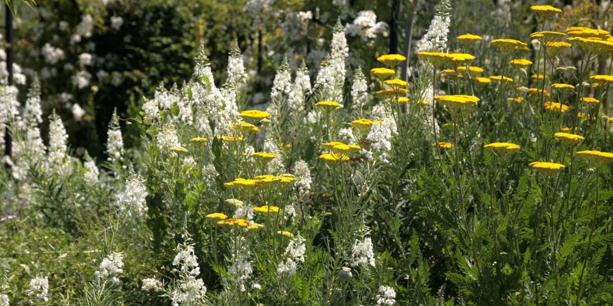 Une idée d’association pour un massif graphique et élégant : Epilobium angustifolium ‘Album’ et Achillea filipendulina