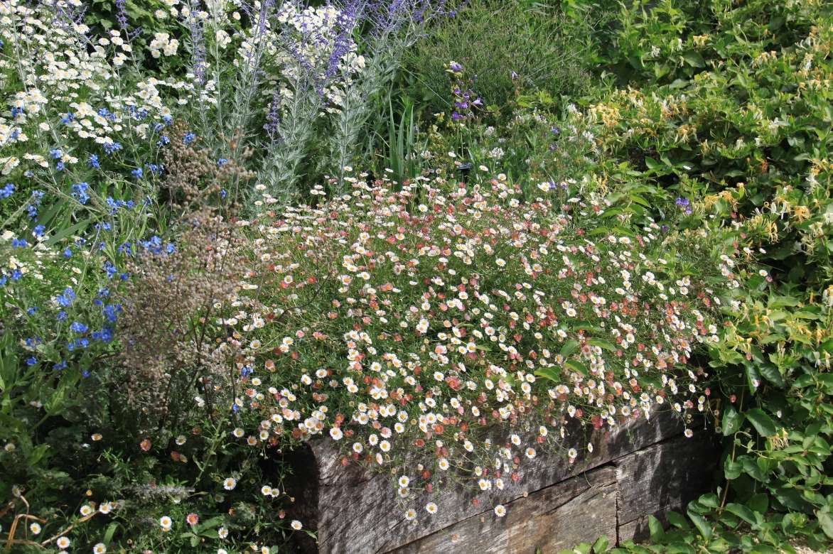 Dans les rocailles ou mixed-border, les plus petites vergerettes forment des touffes basses et étalées qui se couvrent jusqu’à l’automne de petites marguerites, parfaites en association avec de jolies plantes basses qui apprécient les mêmes ambiances telles que les Nepeta racemosa, Géranium sanguineum, Thymus capitatus, ou plus hautes comme les cosmos ou les gauras.
