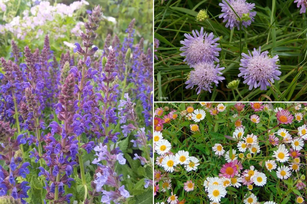 Une idée d’association en bordure de massif : Salvia nemorosa ‘April Night’, Knautia arvensis et Erigeron karvinskianus
