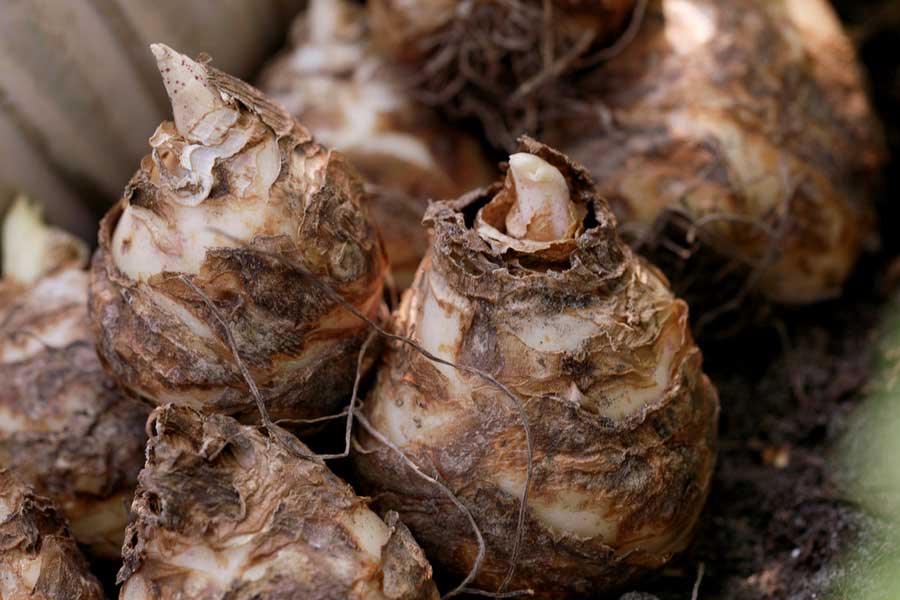 - Éventuellement, vous pouvez déterrer les bulbes pour les rentrer à un endroit sec et aéré, à une température comprise entre 7 et 10 °C. Vous les replanterez au printemps, dès que tout risque de gel sera écarté.