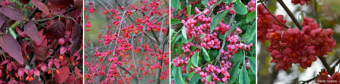 Les espèces caduques (Euonymus alatus, europaeus, bungeanus), à feuilles ordinaires, se rattrapent à l’automne en offrant de superbes couleurs de feuillage pourpre, écarlate à orange mêlées à celles des fruits.