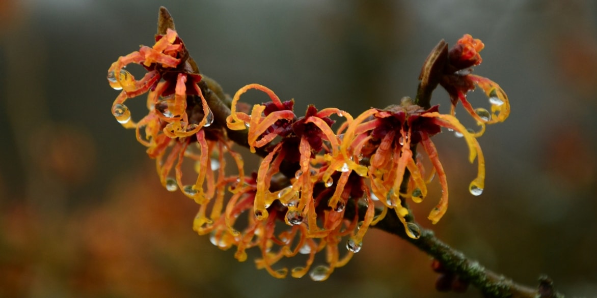 - L’Hamamélis est l’un des rares arbustes à fleurir au cœur de l’hiver.