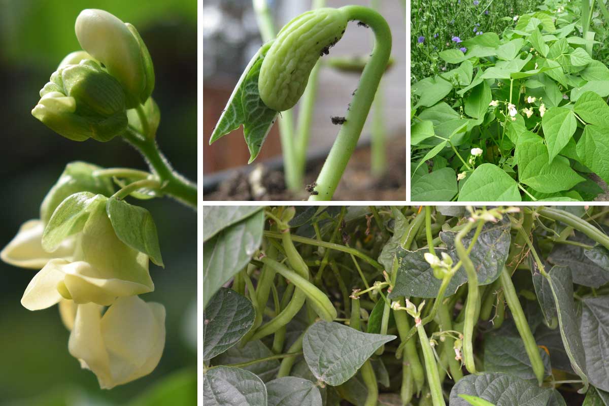 La fleur zygomorphe du haricot – Jeune plantule – Plant de haricot développé – Gousses de haricots formées et prêtes à récolter