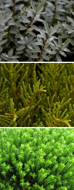 2) les Hebe à petites feuilles