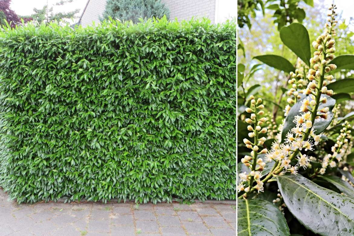 Les lauriers cerises ou laurier palme (Prunus laurocerasus) forment une grande famille à l’allure sensiblement différente selon les cultivars. Caucasica et Rotundifolia, encore appelés laurier palme ou laurier du Caucase, sont très employés en tant que plantes de haie. Ils sont facilement reconnaissables à leurs grandes feuilles vert brillant. Leur dimension atteint aisément 3 à 5 m de haut si vous ne les taillez pas.