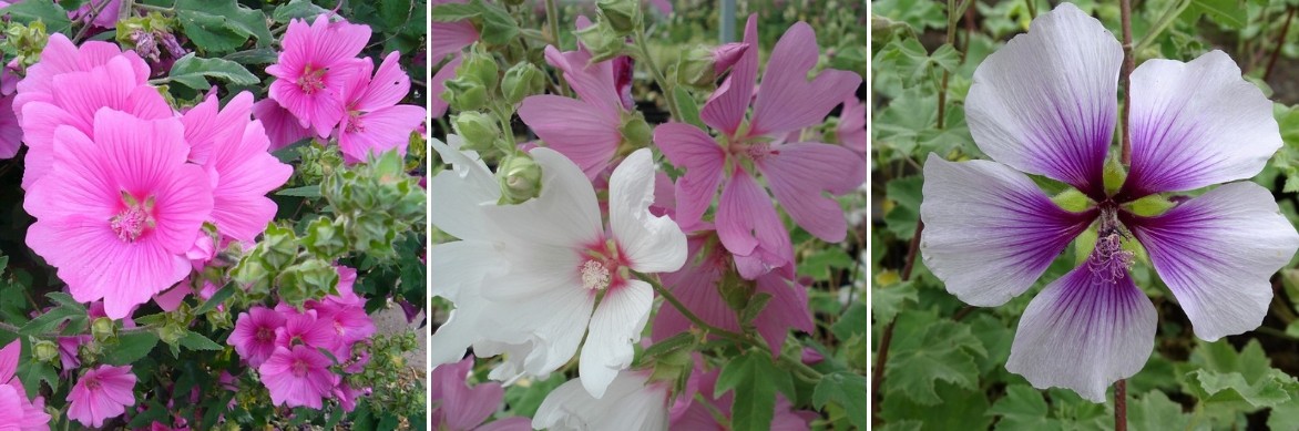 Dans une haie fleurie, mélangez les Lavatères en arbre à des Hibiscus ou Althéa, des abélias, les buddleias ou les tamaris.