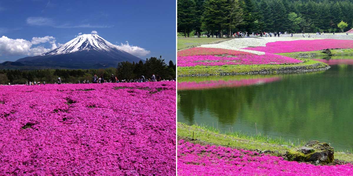 Au Japon, a lieu chaque année en avril-mai le Fuji Shibazakura Festival, où les visiteurs viennent par milliers admirer les tapis de Phlox subulata, plantés dans un parc de 2,4 hectares, avec en fond la vue sur le Mont Fuji ! Les phlox y forment, autour du lac Motosu, de larges parterres colorés, dans les tons rose tendre, rose foncé, et blanc. En japonais, ces phlox mousse sont appelés Shibazakura, qui pourrait se traduire par « cerisier-pelouse », en raison de leur port tapissant et de leur abondante floraison rose et printanière !