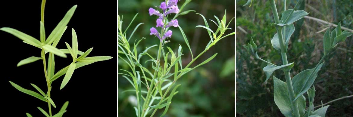 Le feuillage des Linaria vulgaris (photo Frank Vincentz), Linaria purpurea (photo Franz Xaver), et Linaria dalmatica