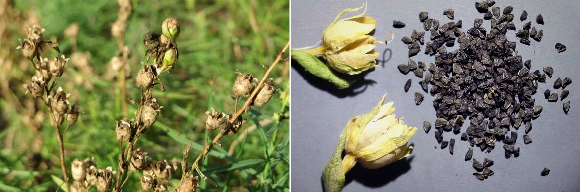 Les capsules de Linaria vulgaris / Les capsules et graines de Linaria genistifolia (photo Stefan Lefnaer)