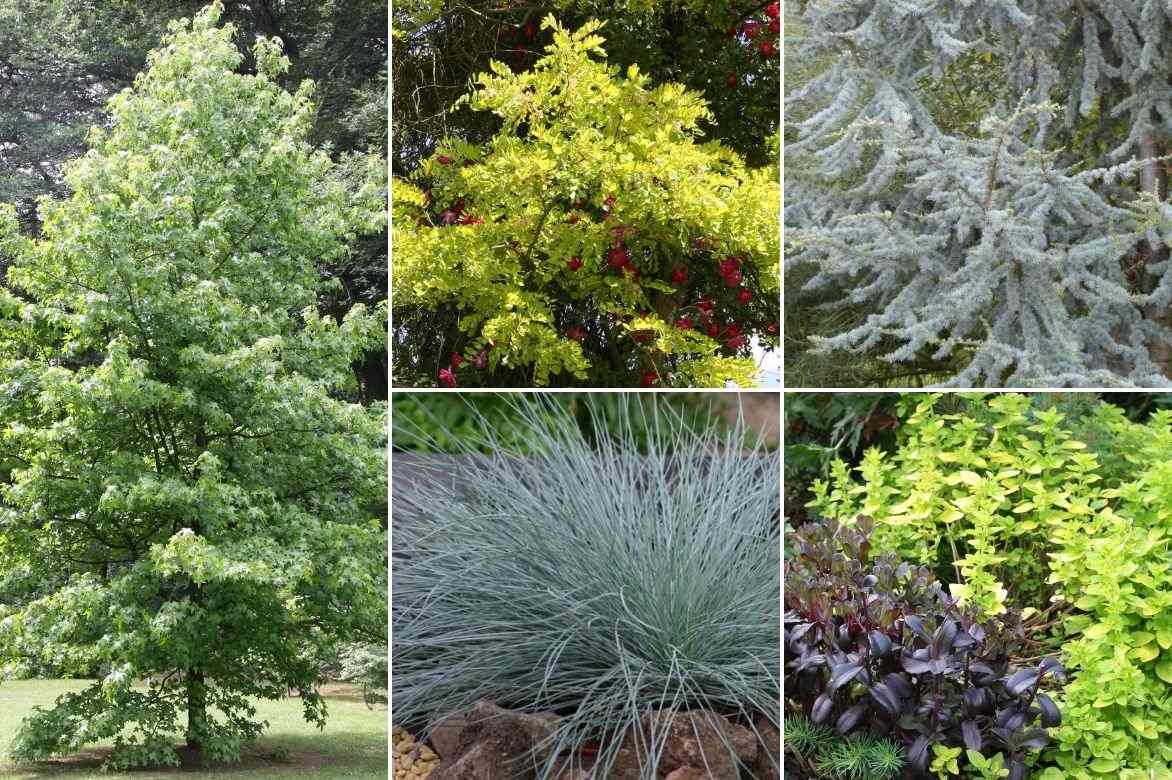 Un idée d’association : Liquidambar styraciflua (ou la superbe variété ‘Worplesdon’), Robinia pseudoacacia ‘Frisia’ dans lequel vous pourrez faire grimper un rosier liane comme ‘American Pillar’ ou ‘Maria Lisa’, Cedrus libani ‘Atlantica ‘Glauca’, Festuca ‘Intense Blue’, Sedum ‘José Aubergine’ et Origanum vulgare ‘Aureum’