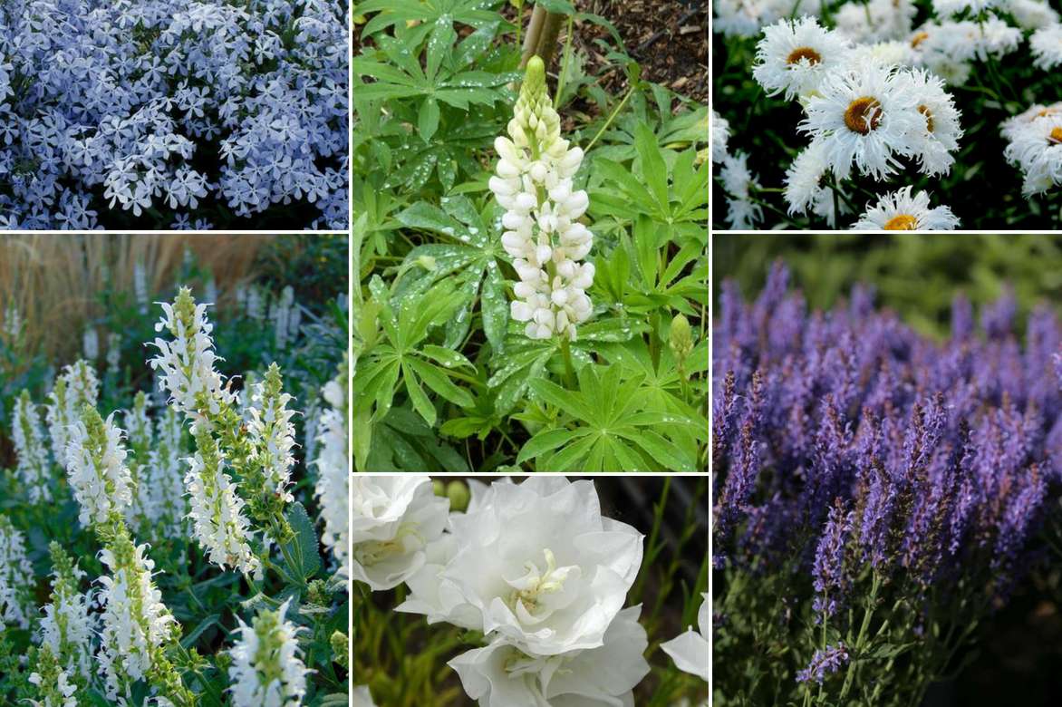Une idée d’association : Phlox divaricata ‘Clouds of Perfume’, Salvia nemorosa ‘Schneehügel’, Lupinus ‘Gallery White’, Campanula persicifolia ‘Alba’, Leucanthemum ‘Shapcott Ruffles’, Salvia nemorosa ‘Blauhügel’.