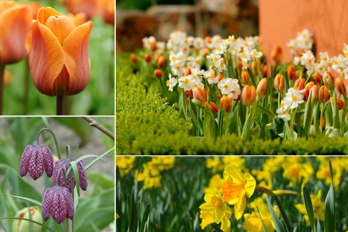 Tulipa ‘Cairo’ (photo iBulb – Wouter Koppen) – Fritillaria meleagris – Tulipes et Narcissus ‘Geranium’ (photo iBulb – Steven Bemelman) – Narcissus pseudonarcissus