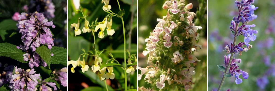La floraison des népétas ! Nepeta subsessilis ‘Pink Dreams’, Nepeta govaniana (photo Scott Zona), Nepeta cataria (photo D. Gordon E. Robertson) et Nepeta faassenii ‘Six Hills Giant’