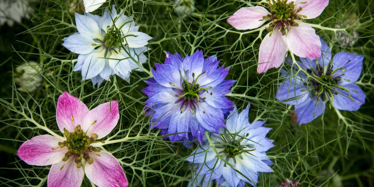 - La nigelle offre une belle floraison étoilée, souvent bleue, mais aussi blanche ou rose