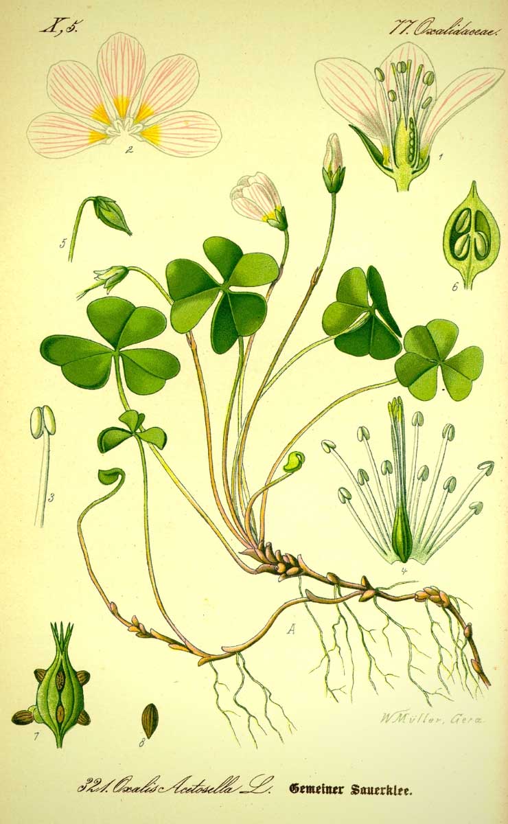 Les Oxalis ont donné leur nom à la famille des Oxalidacées, dont ils représentent la grande majorité des espèces (500 sur 600). Hormis la ressemblance de leur feuillage, les oxalis n’ont donc rien à voir avec les trèfles (Trifolium sp.), ces derniers appartenant à la famille des Fabacées. Leurs fleurs sont d’ailleurs très différentes.