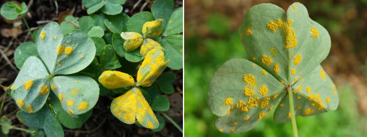 Concernant les maladies, l’Oxalis est sensible à la rouille. Les feuilles portent alors des taches poudreuses orangées. Il s’agit d’une maladie causée par un champignon minuscule, et qui est favorisée par une conjonction de chaleur et d’humidité. Cela affaiblit la plante et la rend moins esthétique, mais est sans réelle gravité, sa survie n’étant pas menacée. Nous vous suggérons de supprimer les feuilles atteintes et de traiter en utilisant un fongicide (décoction de prêle, soufre…).