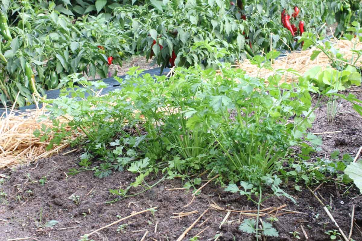 Pailler le pied des plants de persil permet de conserver une bonne humidité à la terre
