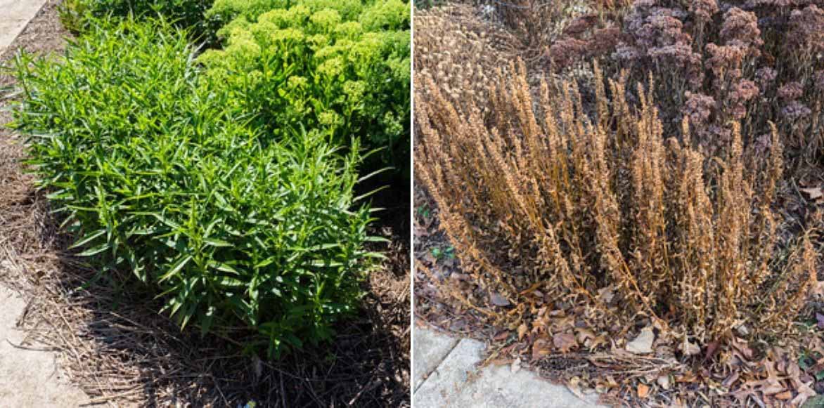 À partir d’une souche rhizomateuse, de belles tiges glabres, dressées, et quadrangulaires, s’élèvent en fonction des variétés et des conditions de culture de 45 cm à 1 m 20 de hauteur en tous sens. La plante forme une touffe buissonnante dense au port étalé. De croissance rapide, semi-drageonnante, elle est capable de s’étaler vigoureusement, se révélant même parfois envahissante, si les conditions lui conviennent.