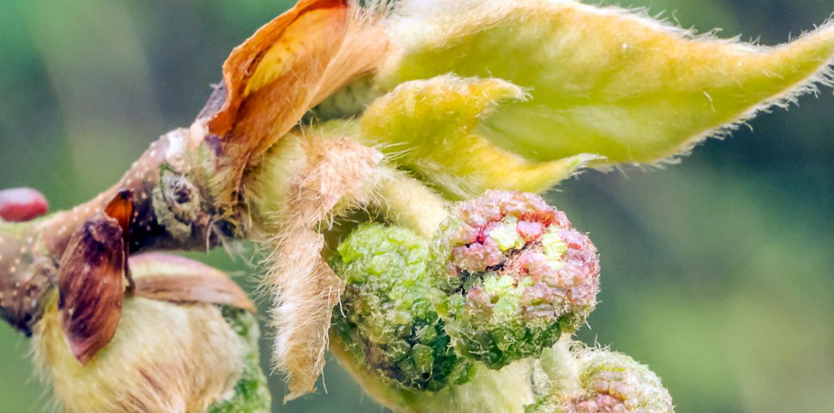 Naissance de feuilles et de fruits sur un Platanus orientalis