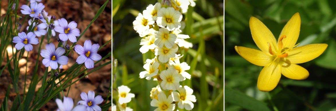La floraison des Sisyrinchium angustifolium, Sisyrinchium striatum et Sisyrinchium californicum (photos The Marmot / Hectonichus / Tom Hilton)