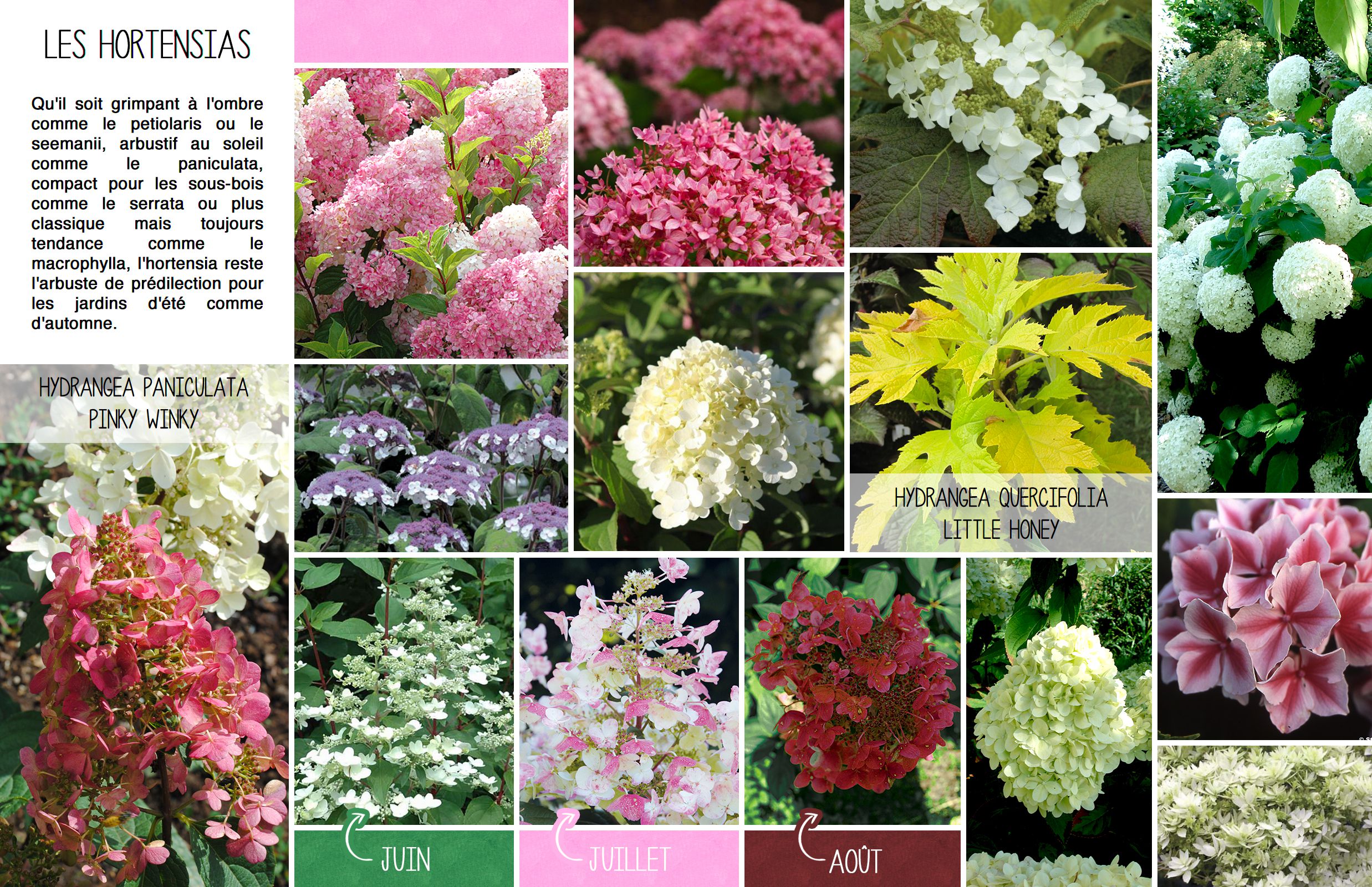 Qu'il soit grimpant à l'ombre comme le petiolaris ou le seemanii, arbustif au soleil comme le paniculata, compact pour les sous-bois comme le serrata ou plus classique mais toujours tendance comme le macrophylla, l'hortensia reste l'arbuste de prédilection pour les jardins d'été comme d'automne.