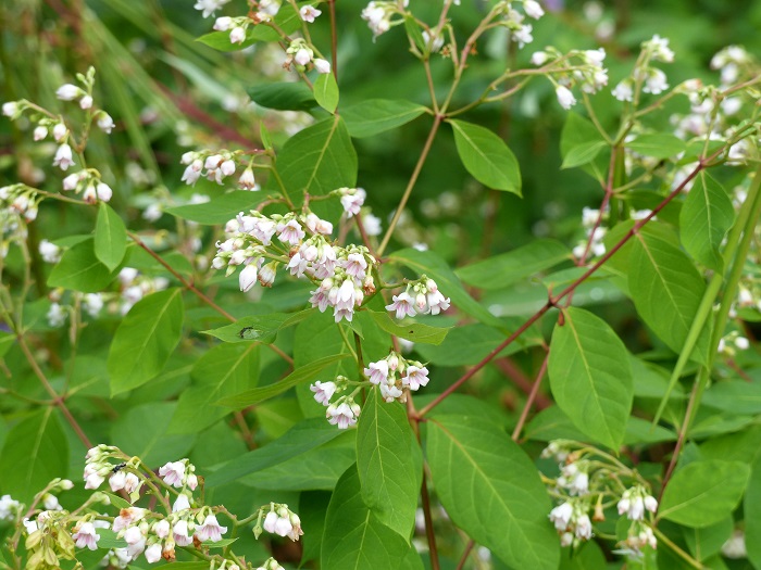 Un étroit "sentier indien" serpente au cœur de la prairie et permet d'aller se confronter au plus près de ces géantes américaines ! On peut ainsi s'imaginer les sensations éprouvées par les colons à la conquête du Far-West au sein de cette végétation exubérante... et faire des découvertes botaniques, comme moi devant ce Pycnanthemum tenuifolium, élégant représentant d'un genre typiquement américain voisin des monardes, l'Apocynum cannabinum, une grande vivace drageonnante cousine des pervenches, ou encore le Silene regia, d'un coloris écarlate particulièrement brillant qui attire immanquablement le regard à défaut de fleurir en masse.