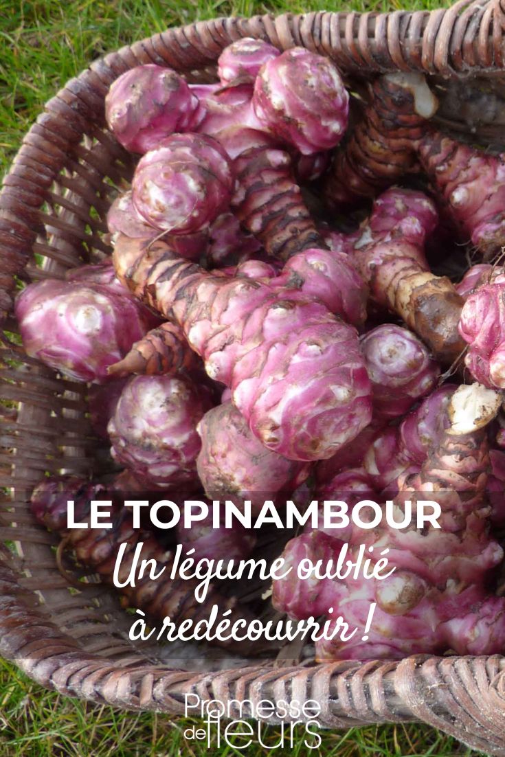 Le topinambour forme de grandes touffes atteignant 2,50 m à 3 m de hauteur (mais il existe aussi des variétés naines, ne dépassant pas 50 cm de haut). Ses longues tiges dressées et rugueuses portent des feuilles vert foncé, ovales à lancéolée, de 10 à 20 cm de long, et déploient à leur sommet, d'août à octobre, de jolies fleurs jaunes ressemblant un peu à celles du tournesol, qui appartient à la même famille. Il produit des tubercules charnus et noueux, qui ressemblent aux racines du gingembre. Cette plante très vigoureuse se propage rapidement grâce à ses tubercules, ce qui la rend un peu envahissante. Le topinambour est aussi proche de l'Hélianthis, un autre légume oublié.