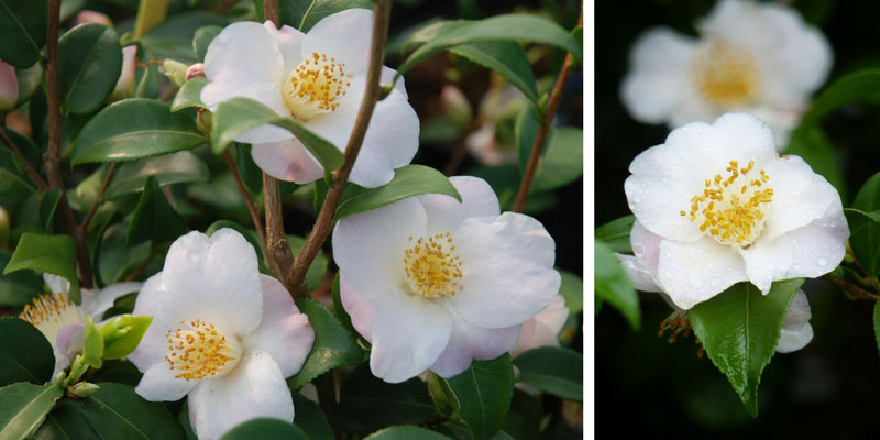 Le camellia Cinnamon Scentsation : un camélia champêtre à fleurs très parfumées en hiver