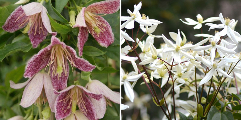 La clématite cirrhosa 'Advent Bells' et la Clematite armandii