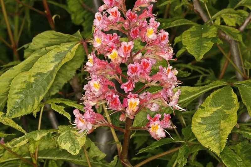 C'est la floraison qui a été travaillée sur cette variété : elle survient, fièrement dressée dans le courant du printemps, en panicules généreuses de petites fleurs rouge rosé. Mais aussi le feuillage marginé, l'ensemble lui donnant presque un air exotique. Ce marronnier a la particularité de ne pas produire de marrons, car ses fleurs sont stériles, ce qui s'avère un avantage pour les jardiniers n'aimant pas avoir à s'en occuper et à les ramasser.
