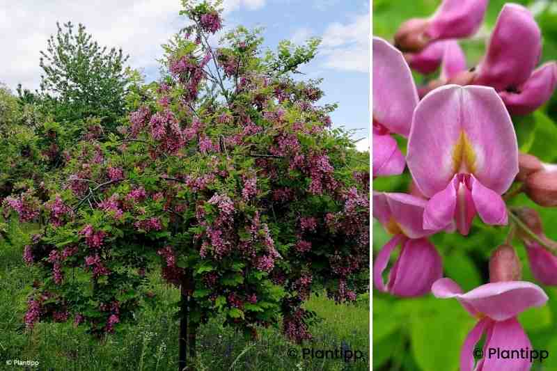 Au mois de mai ou juin, on se régale de la vision rosée, les longues grappes de fleurs s'échelonnant par centaines, devenant un véritable bar à abeilles et autres insectes pollinisateurs. Les feuilles deviennent légèrement jaunes avec les premiers froids de l'automne. Cet arbre de croissance rapide prendra une allure plutôt érigée, voire irrégulière, avec le temps. Complètement rustique, vous pouvez le planter dans de nombreux contextes, car il supporte aussi bien la pollution urbaine que le froid, la sécheresse (une fois installé) et les sols pauvres. Une aubaine pour les jardiniers débutants !