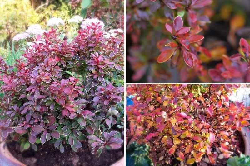 Berberis thunbergii 'Admiration', feuillage pourpre qui vire peu à peu à l'orangé en automne