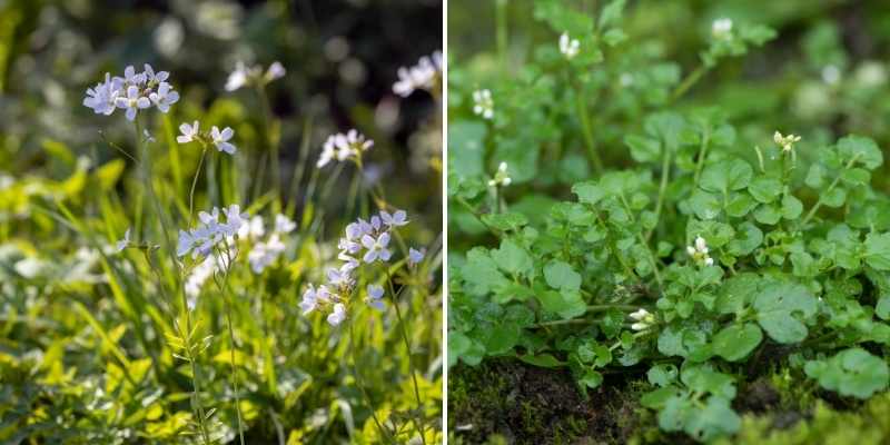 À noter que les feuilles de la cardamine hérissée (Cardamine hirsuta) sont aussi comestibles. Elle est plus petite et à fleurs blanches, mais extrêmement courante dans nos jardins au début du printemps : au sol, entre les dalles, dans les pots et jardinières... Bref partout.