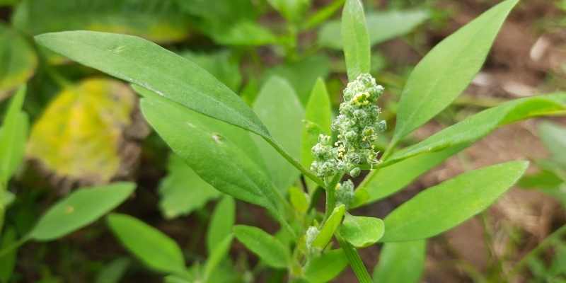 Le Chénopode blanc ou Ansérine blanche se reconnait à ses feuilles farineuses en forme de pattes d'oie (d'où le nom "ansérine") et à son épi de minuscules fleurs vertes sans pétales. Le chénopode est une plante bio-indicatrice de sols riches. Les feuilles de la plante nourrissent des chenilles de papillons, des chrysomèles, des punaises... mais aussi des oiseaux grâce à leurs graines.