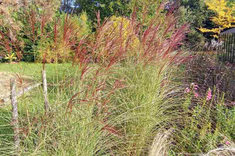 Fleurissant plutôt tardivement pour des Miscanthus, ils commencent à former leurs futurs épis fin septembre, puis en octobre s'empourprent avec leurs inflorescences rouges. Ils sont actuellement, au mois de décembre, encore splendides, la couleur de la floraison ayant progressivement évolué vers un beige chamoisé. C'est simple, je les adore !