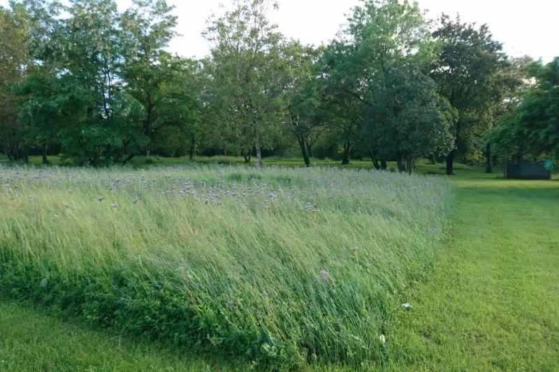 Certaines zones peuvent également ne plus être tondues mais, simplement fauchées une ou deux fois par an. Ce sont des zones où l'on ne va que très peu, comme un verger que l'on fauchera :