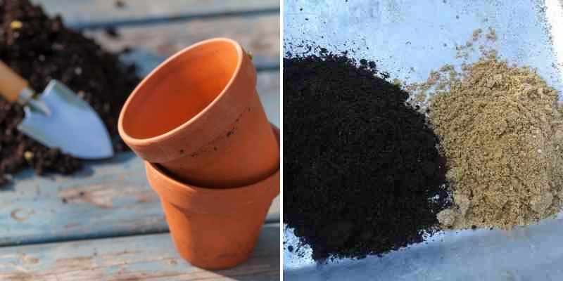 - Préparez un pot rempli d’un mélange de terreau pour semis et de sable de rivière à parts égales pour accueillir vos boutures