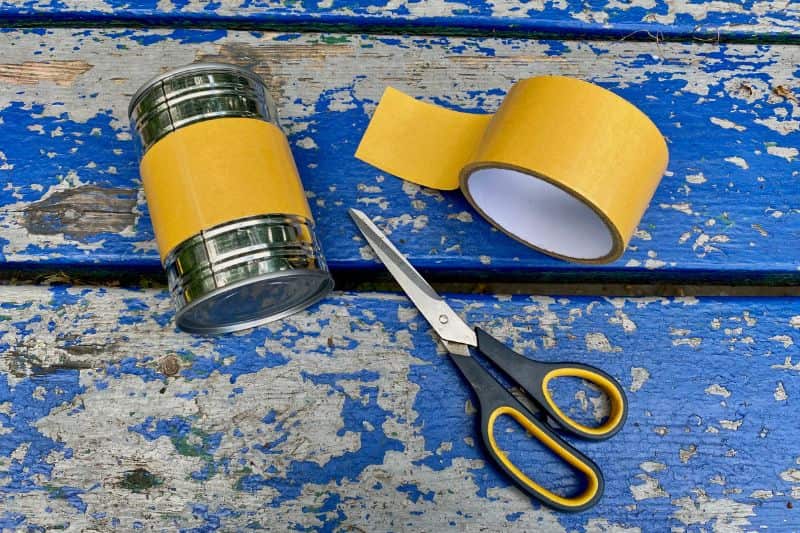 - Enroulez la bande double-face autour de la boîte de conserve, en veillant à ce qu'elle soit bien collée sur toute la surface.