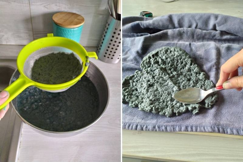- Égouttez la patte à papier à l'aide d'une passoire ou d'un tamis afin d'éliminer le plus d'eau possible.