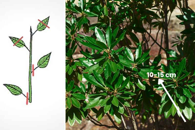 - Sélection de la tige : choisissez une pousse latérale de l'année, non fleurie, d'environ 10 à 15 cm de longueur. Les boutures doivent être prélevées sur des plantes mère en bonne santé et vigoureuses.