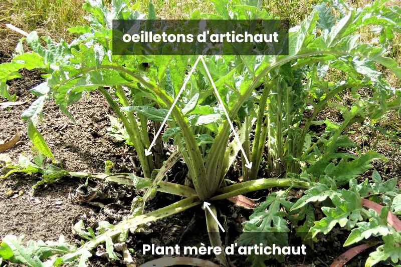 2- Commencez par observer votre artichaut pour voir où se trouve le pied mère et les œilletons qui l'entourent.