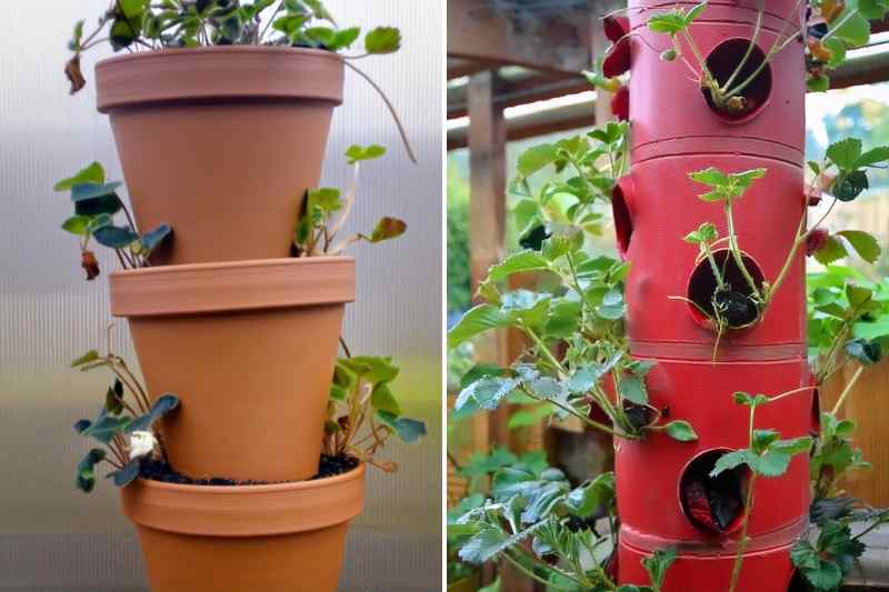 2. Tour à fraisiers en pots empilés