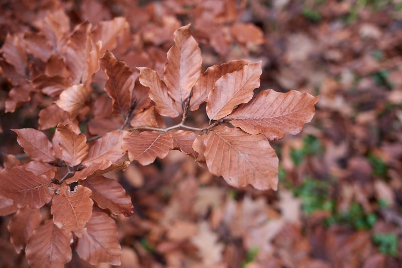 - le hêtre commun ou fayard (Fagus sylvatica), avec son feuillage bien dense qui prend de belles couleurs cuivrées à l’automne ;